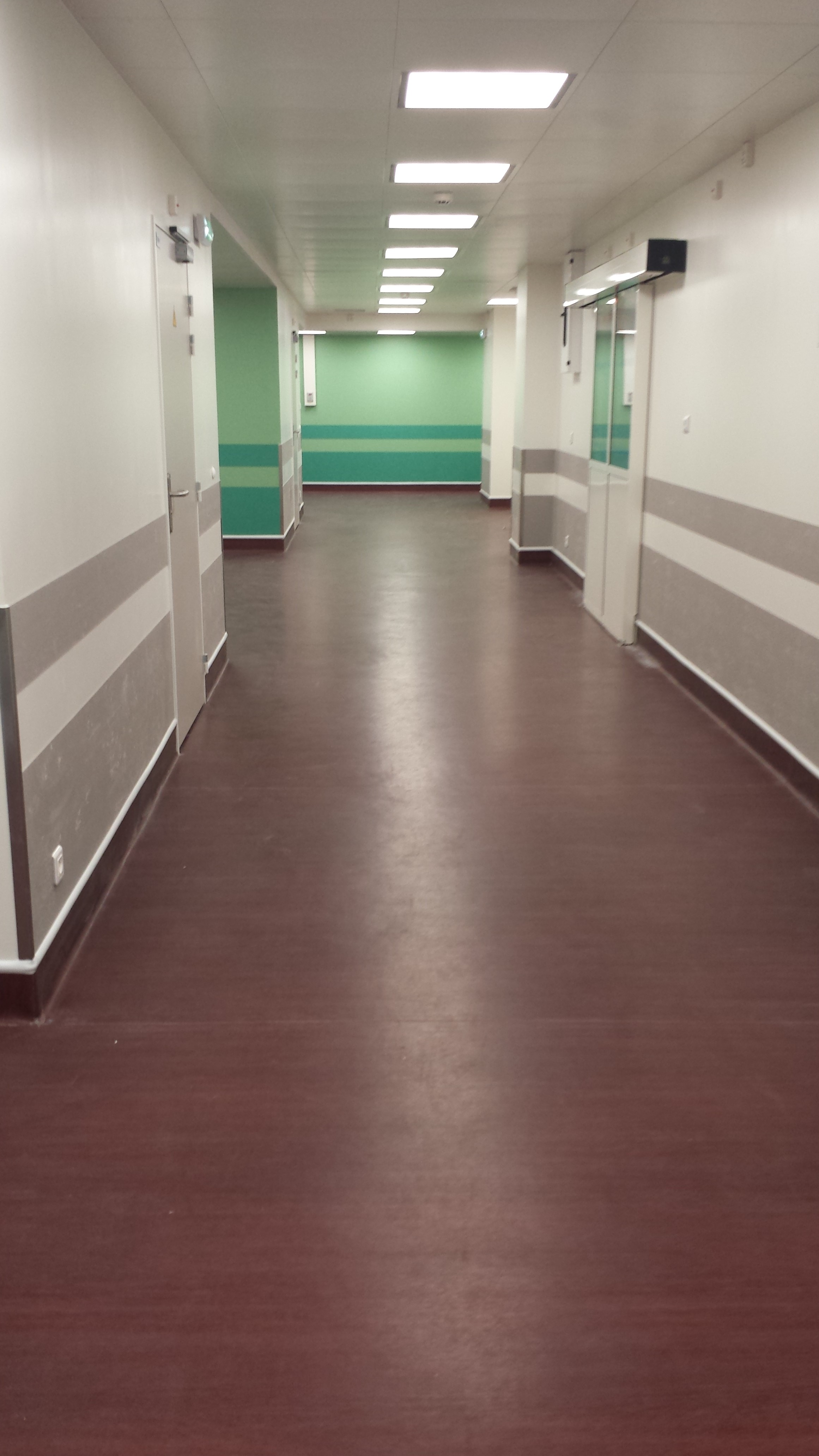 Grâce à son équipe composée de 8 poseurs qualifiés et d’un conducteur de travaux, Iser’sol est en mesure de mener à bien des chantiers à haute valeur ajoutée où la qualité prime. « Nous faisons beaucoup de chantiers hospitaliers, en particulier dans les locaux à risques, comme les blocs opératoires où nous maîtrisons parfaitement les techniques de soudage à chaud qui évite la propagation de microbes » Explique Christian Roulet. Pose de PVC antidérapants au sol et revêtement mural PVC de salles de bain dans les cliniques et maisons de retraite, c’est par exemple à Iser’sol que l’on doit la réalisation de la clinique Médipôle de Savoie à Chambéry. On trouve également la signature d’Iser’sol sur des chantiers comme le CHU de Grenoble, les Centres hospitaliers de Chambéry, Albertville et de la plupart des maisons de retraite de Savoie, Haute-Savoie, Isère. L’entreprise est également en mesure de répondre aux appels d’offres des collectivités locales et territoriales. Sols sportifs, réfection ou pose de sols dans les immeubles….L’entreprise est capable de travailler dans des conditions particulières. Ainsi, elle a récemment livré le chantier des sols (salons, hall, sanitaires, réfectoire) de la gare d’arrivée de la télécabine de Solaise à Val d’Isère. Un chantier situé à 2 800 mètres d’altitude !